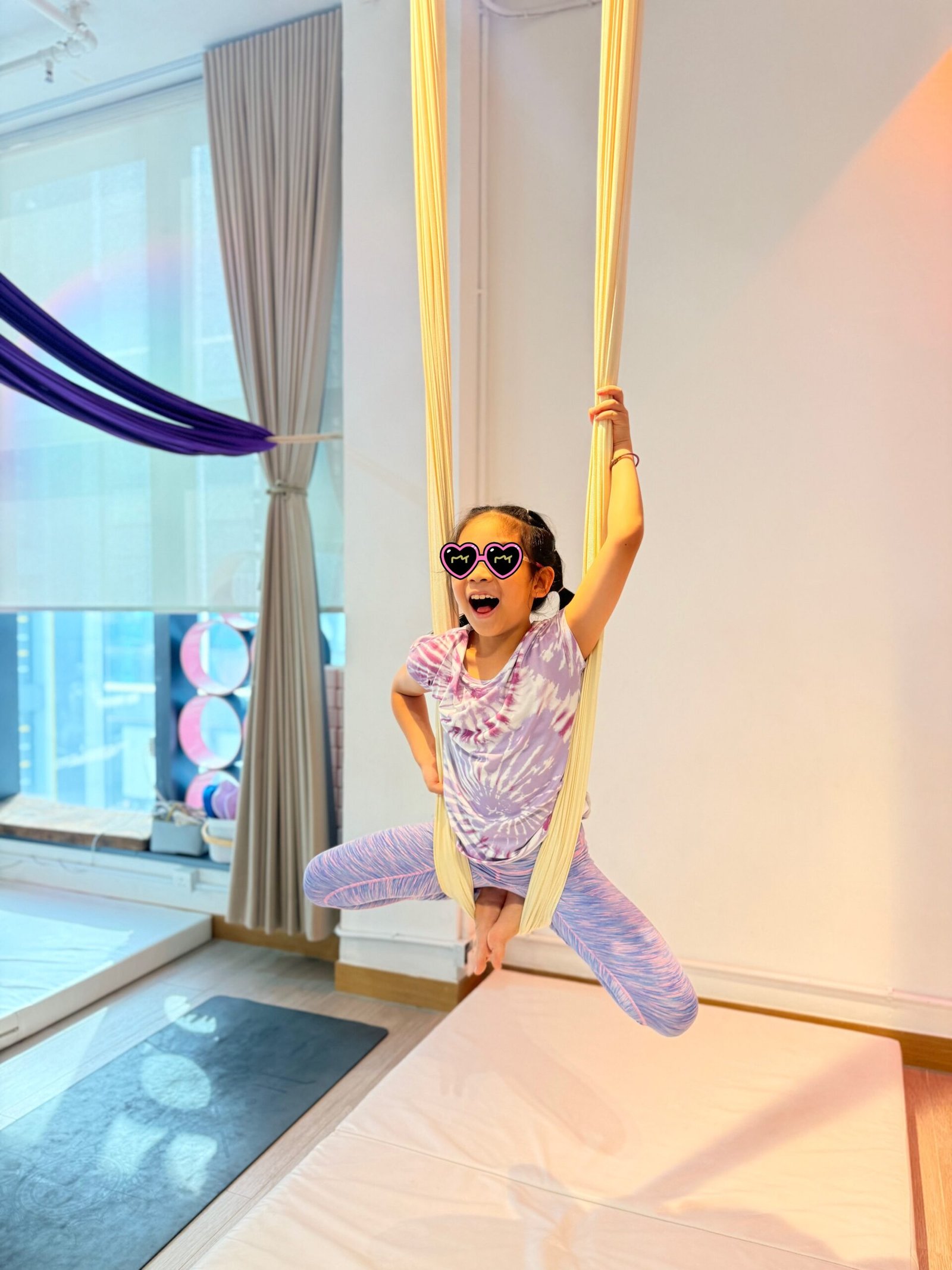 空中瑜伽課程特別刺激又好玩,對孩子而言既新鮮又有難度,是一種從「玩中學習」的絕佳方式。我們相信,孩子可以從空中學會克服恐懼、建立勇氣與自信,同時透過創意發揮,找到屬於自己的表達方式。