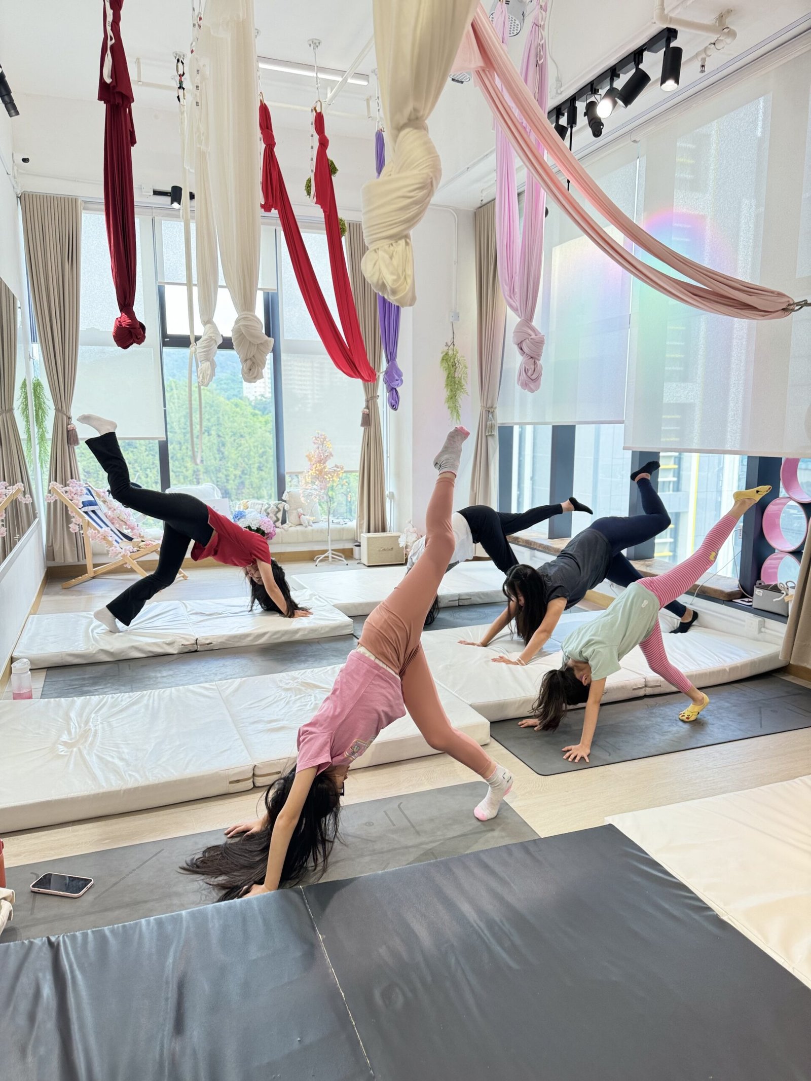 空中瑜伽:最多 8 人,體操班:最多 10 人,3–6 歲班:最多 5 人。