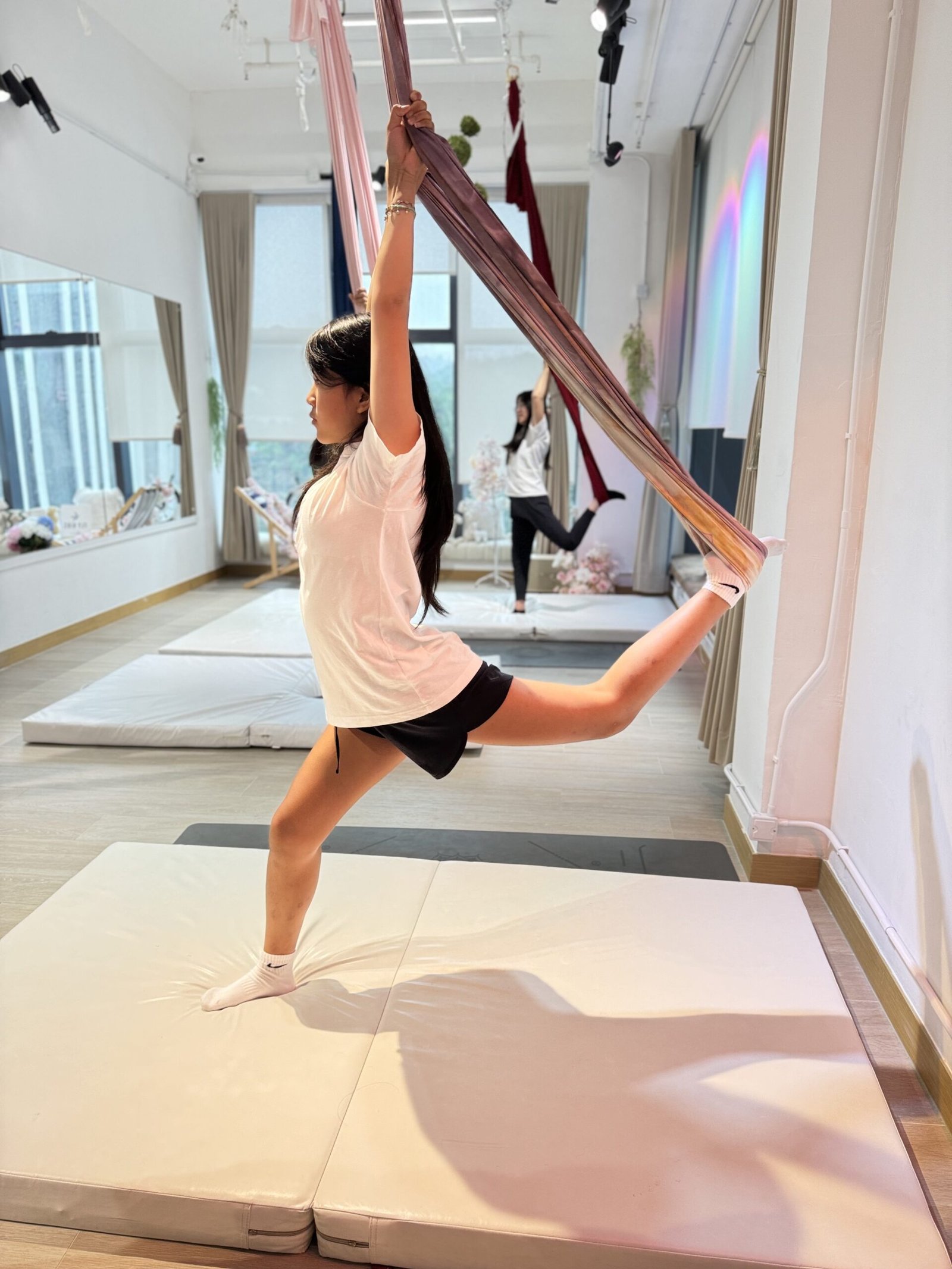 In addition to aerial yoga, we offer Kids Tumbling & Acrobatics and K-pop Dance Classes with MV Experience, providing children a variety of fun and challenging ways to develop physical skills, creativity, and self-expression.