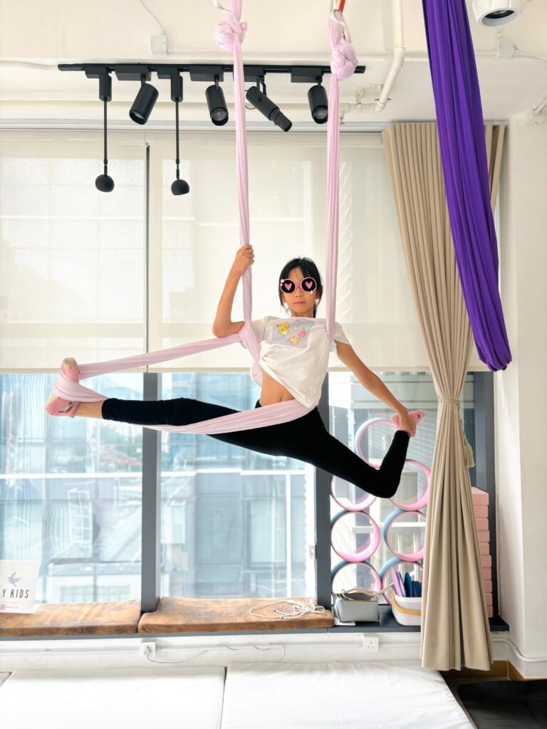 Back in Hong Kong, she noticed a lack of aerial yoga classes designed specifically for children and teens—with safe equipment and age-appropriate guidance.